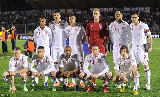 Ready to go: England players line up before the game