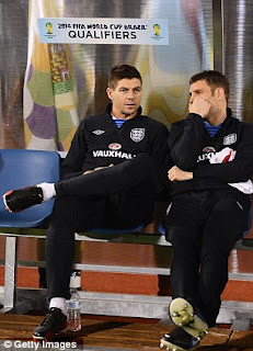Rested: England captain Steven Gerrard (left) chats to James Milner on the bench
