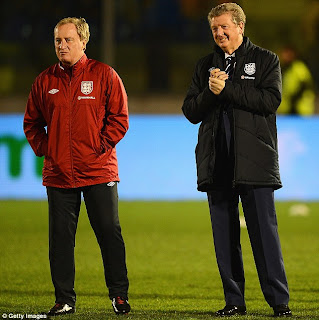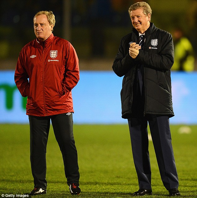 Entertained: Roy Hodgson (right) looks on at the pre-match entertainment of flag throwing